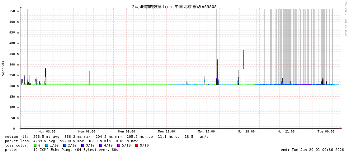 洛杉矶 cogentco.com - 中国移动(香港) 骨干网 AS174-AS58453