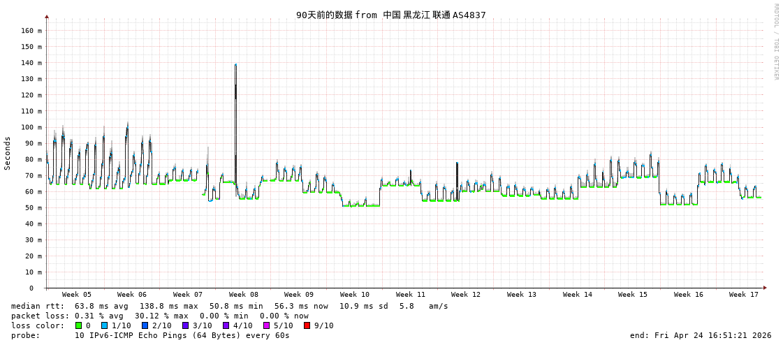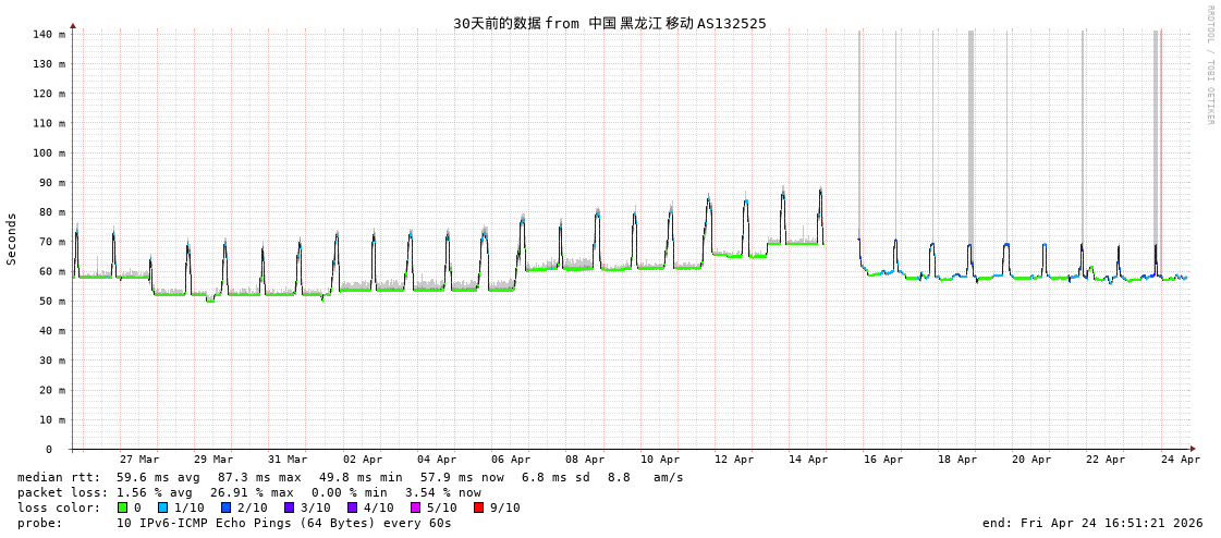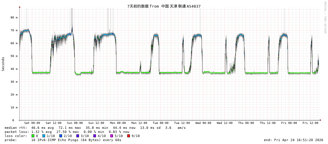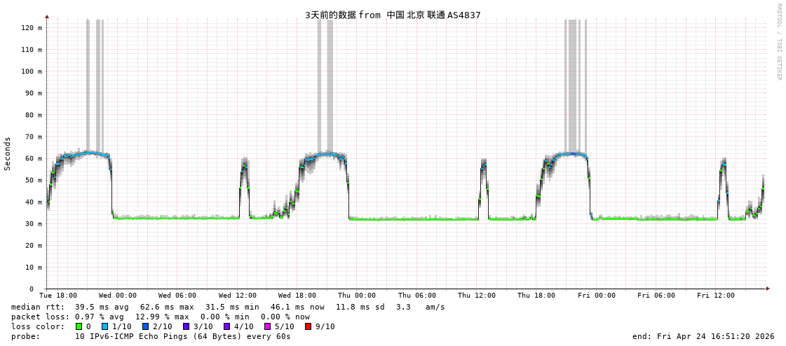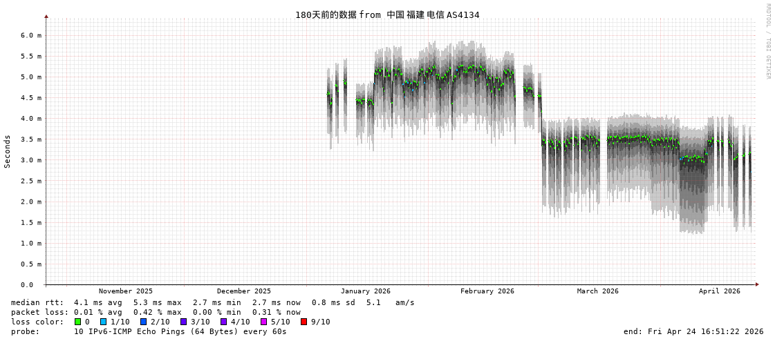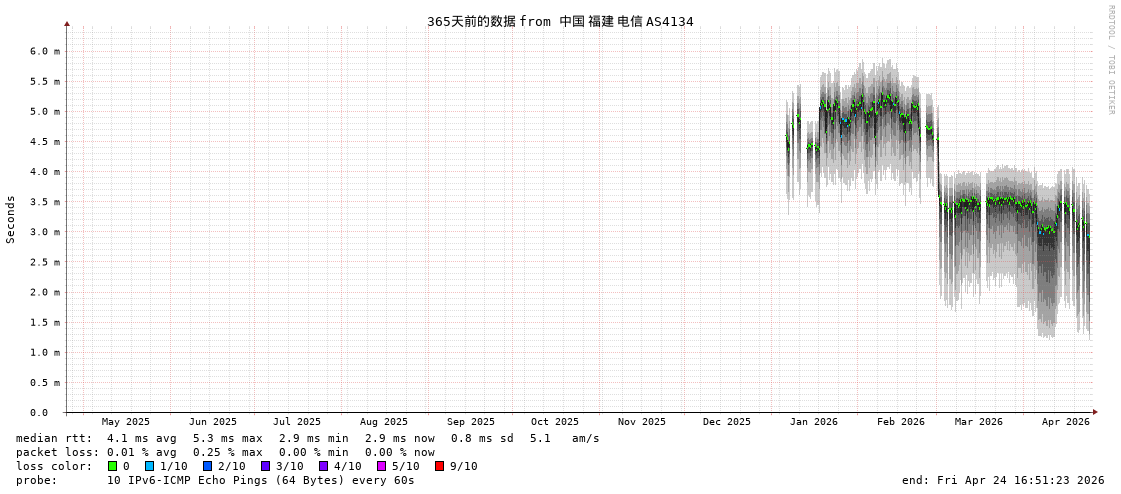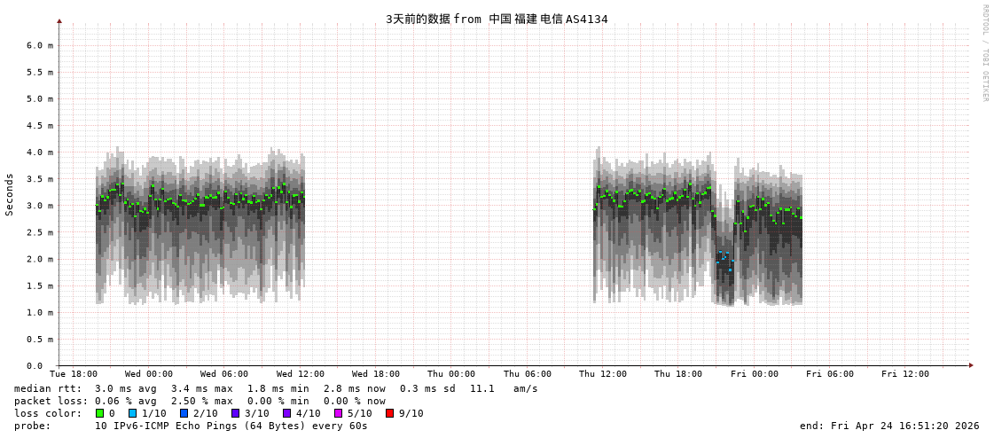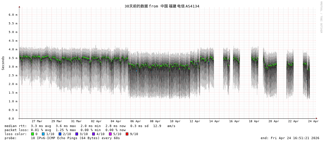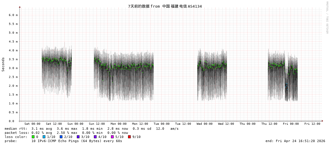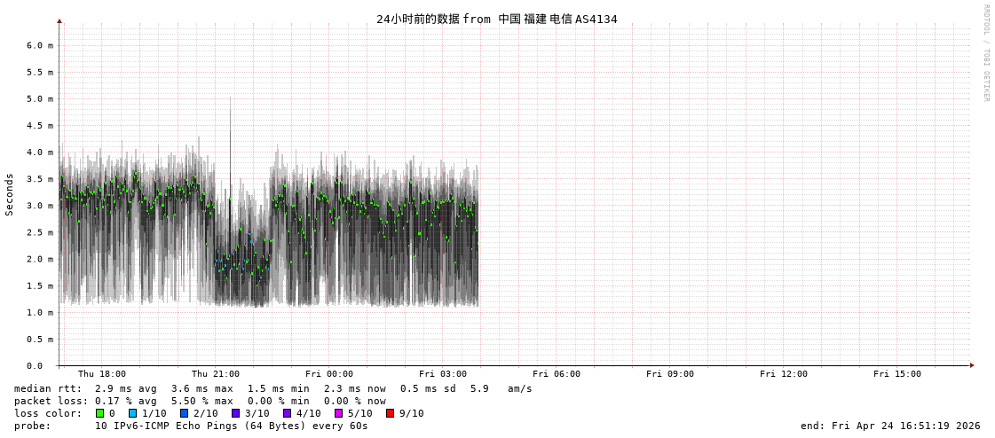 福州电信 骨干网 AS4134 IPV6